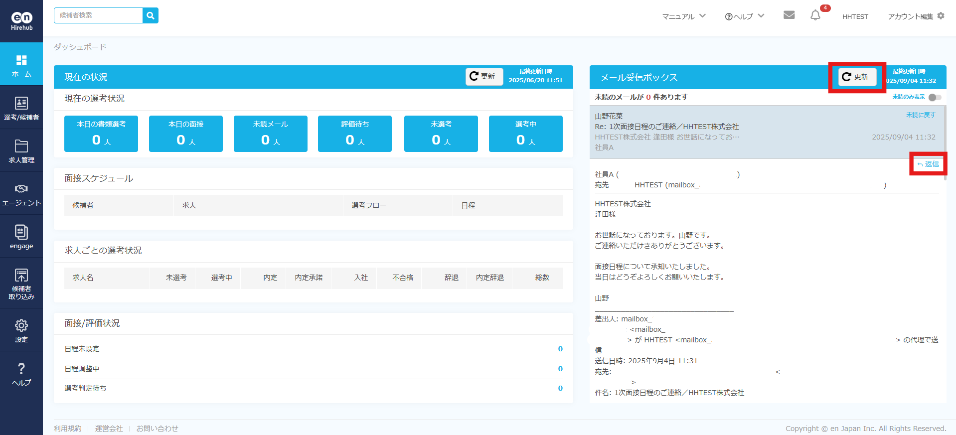 ダッシュボードからメールに返信する