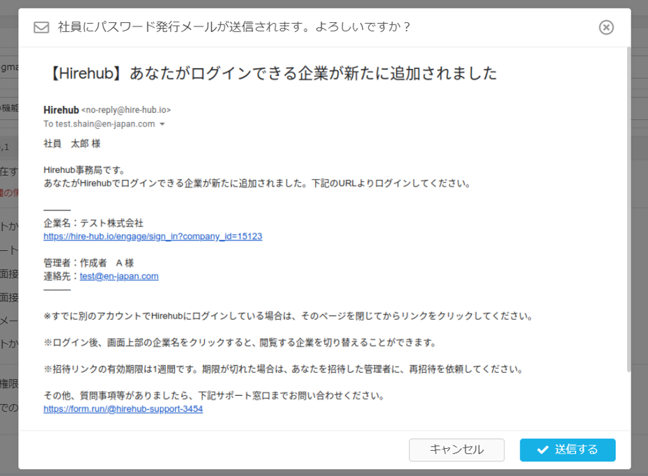 3.「保存」の後、エン花子さんにメールで通知が届きます。(下記写真はサンプル画像です)