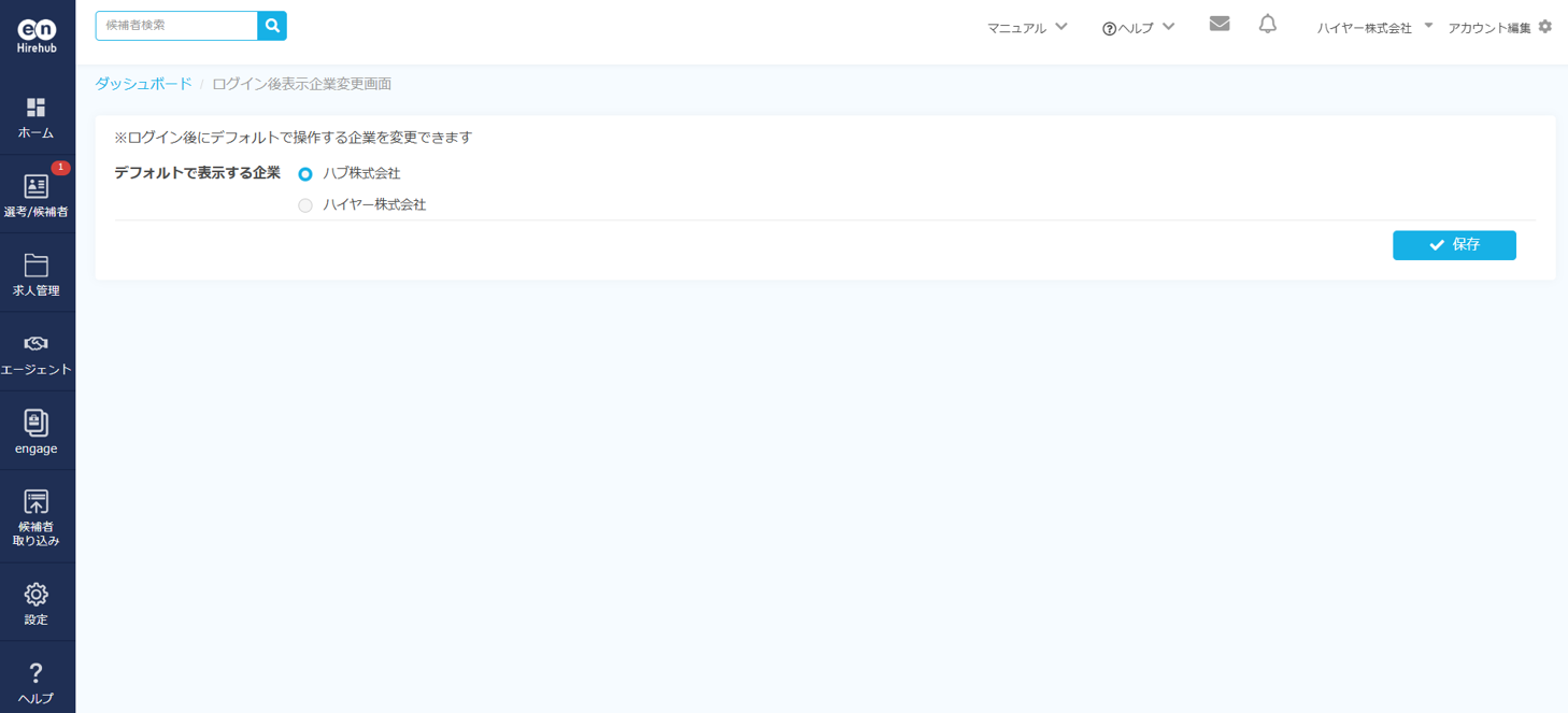 マルチログイン機能をお使いの社員アカウントが、ログイン時にデフォルトで表示される企業を変更する際の手順です。